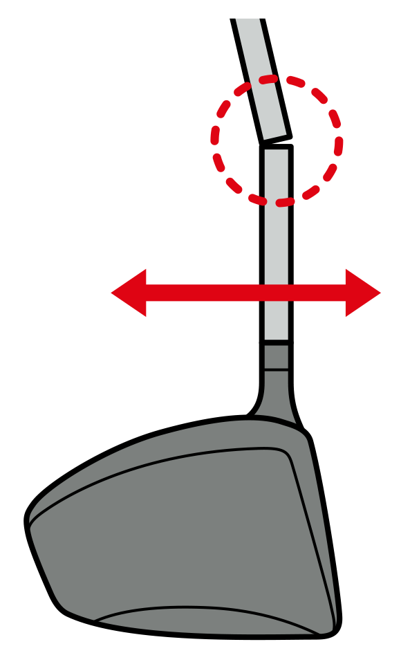 インパクト時に、強いダフリ(地面への打撃)をしたときは、ネック部やシャフトに異常がないか必ず点検してください。そのまま使用するとシャフトが折れて、けがの原因になることがあります。また、樹木や建造物、石や金属などで衝撃を受けた場合も、必ず点検してください。 |