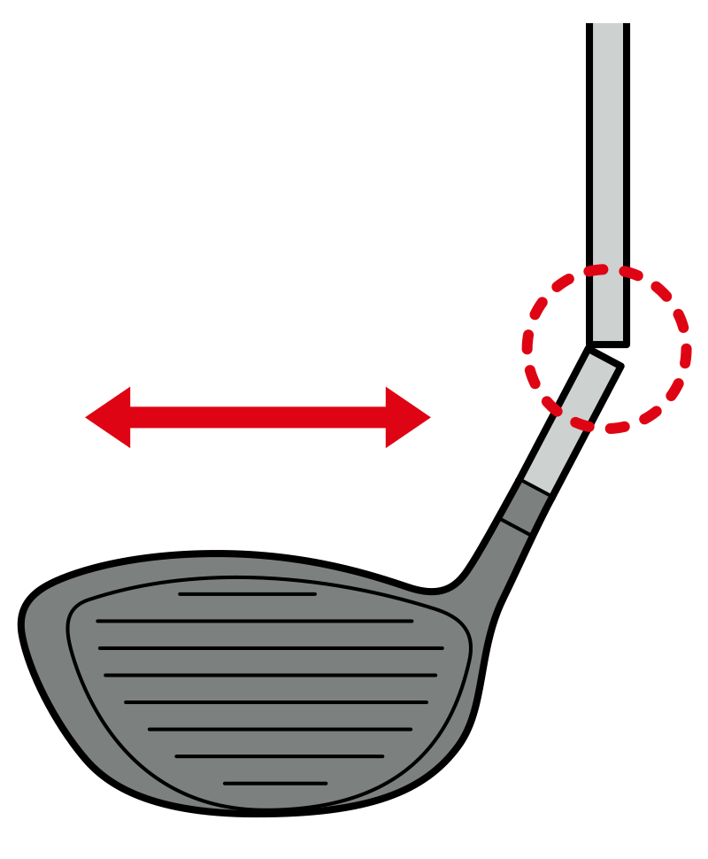 極端なヒールショットやネック打ちは、シャフトやヘッドが破損する原因になることがあります。特に、金属ヘッドのネック打ちは、ネック部の曲がりやシャフト折れの原因となります。 |