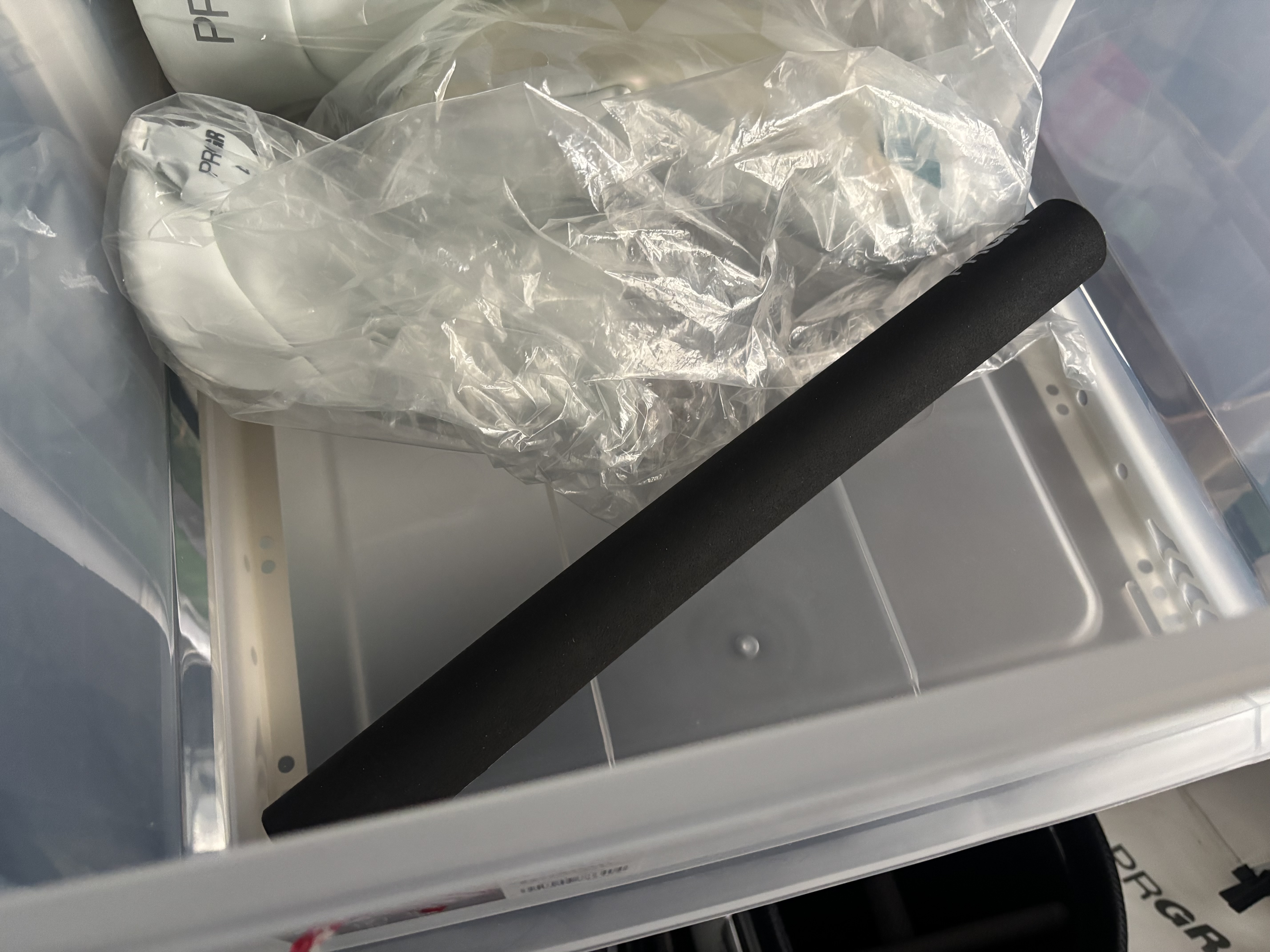 2024年の春、あるスタッフがこの保管庫で奇妙なグリップを発見します。通常のグリップよりかなり太くて重くて長い、竹輪のような形状のスポンジゴムで、しっとり柔らかくずっと握っていたくなるような不思議な感触。この謎の太グリップを見て、アプローチが苦手なスタッフはひらめきます。