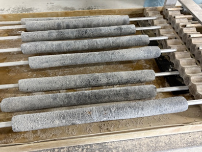 いつ作ったのかもわからない謎のグリップの再現にはかなりの苦労を要し、成分分析、加硫や研磨方法、品質のばらつきなどの難題をひとつひとつクリアしていき、何度も試作を重ね