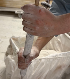 何よりも高い壁は、通常のゴルフグリップより3倍近い重さです。発泡率がわずかに変わるだけで、重量、硬度に大きな差が生じてしまう。試作ロットごとに数値がばらつき、製品としてなかなか安定せず、量産品としての品質に仕上げるために、幾度もの試作と修正を繰り返しました。