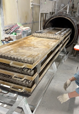蒸しあがって膨らんだものを研磨して規格サイズにするというものですが、そのすべてを手作業でおこなうため手間と時間がかかるのと、その時の気温や湿度によってゴムの膨らみ具合が異なるため、同品質で量産するのが非常にむずかしい代物だったのです。
