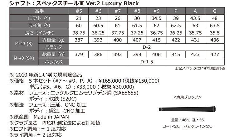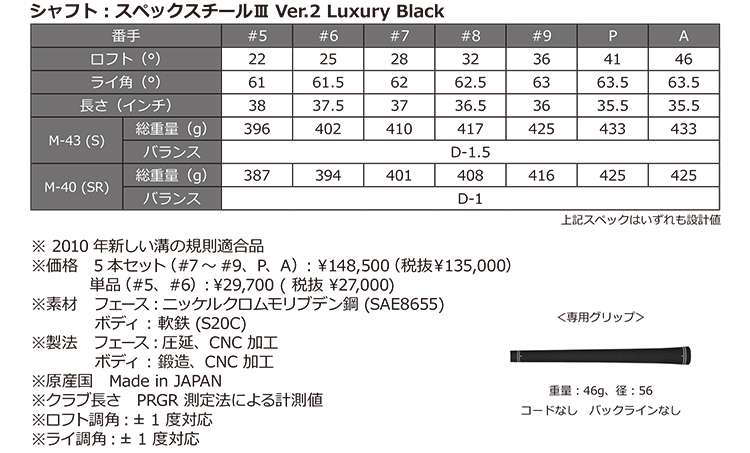 「PRGR 03 IRON Limited Black Edition」のスペック