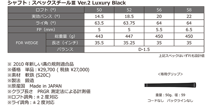 「PRGR 0 WEDGE Limited Black Edition」のスペック
