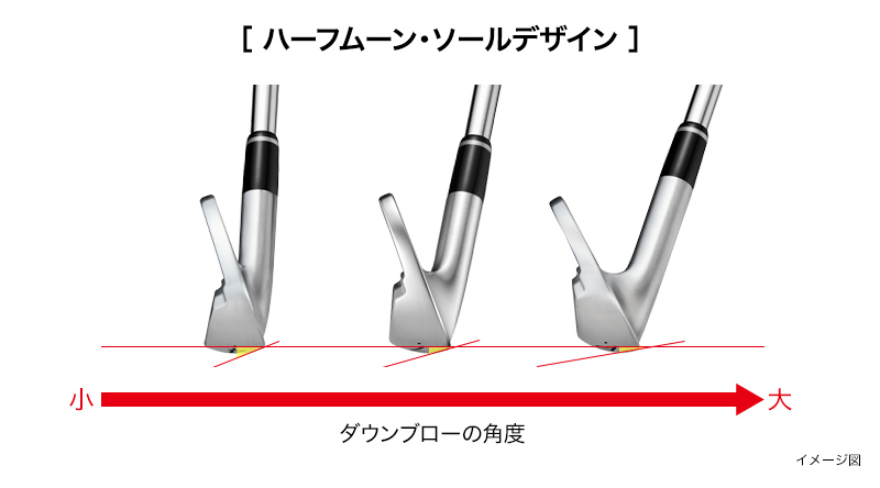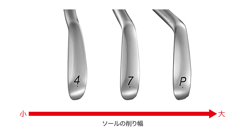 全番手でリーディングエッジが刺さりにくく、かつ抜けの良い、安定したボールコンタクトが可能となった。