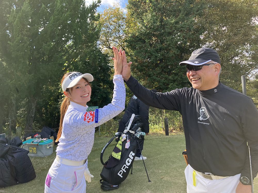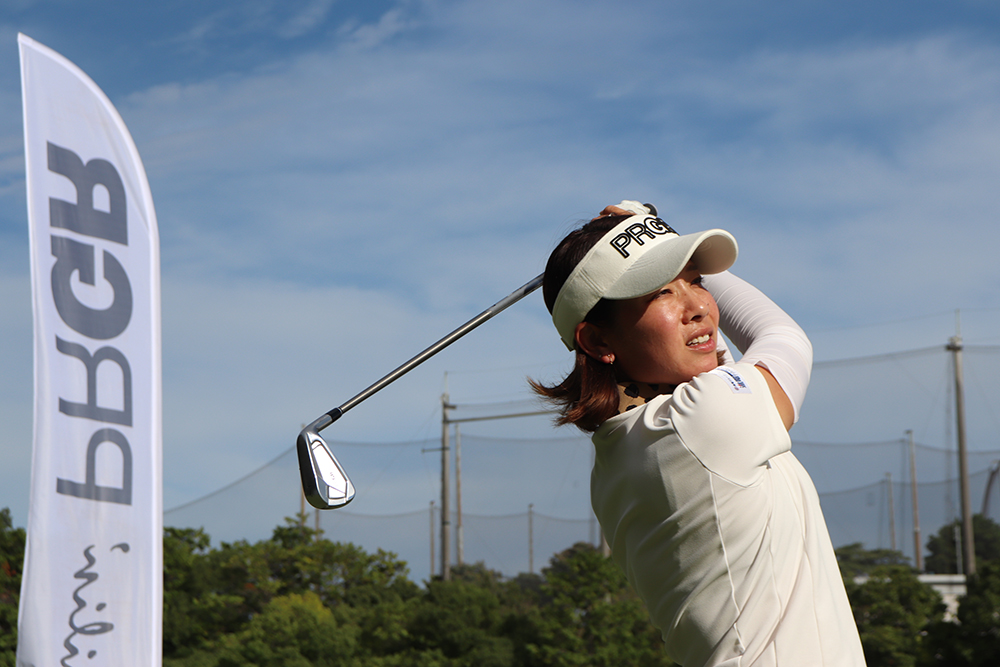 塩手選手の使用クラブは「PRGR 01 IRON 7番」。序盤は寒さもあり苦戦していましたが、気温の上昇と共に本領を発揮。キレキレのアイアンショットを披露していただきました。