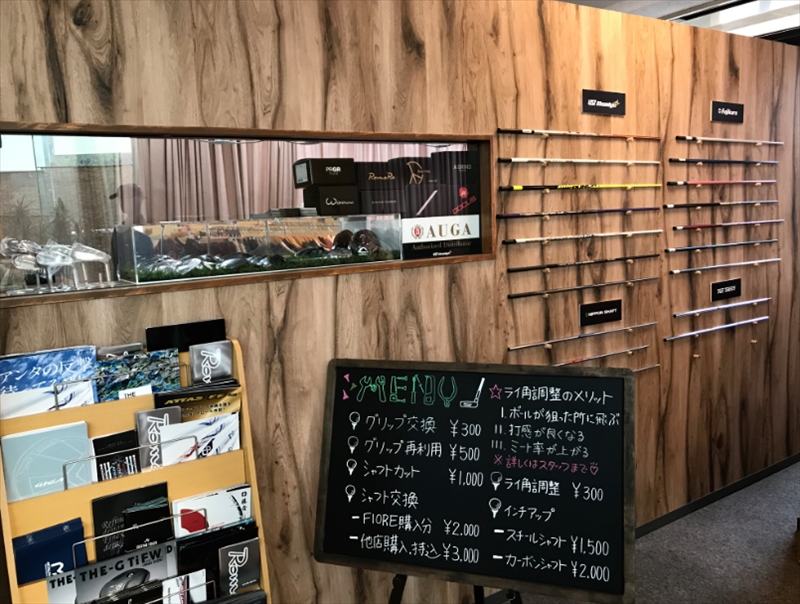 当店の特長は豊富な試打クラブと他店ではあまり扱いのないウェア、グッズの品揃えです。特に試打クラブはシャフトのバリエーションを非常に多く準備しておりますので、お客様のスイングにマッチしたクラブがきっとみつかります。ぜひ一度お試しください。スタッフ一同お待ちしています。